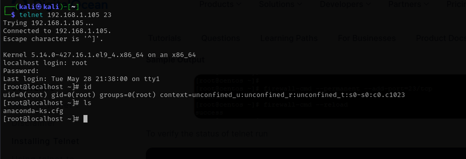 Pertama sekali pasang telnet dan telnet server di dalam komputer atau pelayan anda berdasarkan command di bawah.