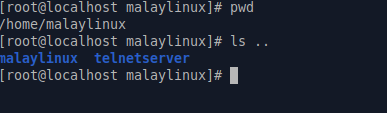 • ls untuk menyenaraikan direktori iaitu malaylinux dan telnetserver.