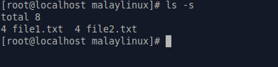 • command ls -s adalah untuk memaparkan fail beserta saiz file tersebut.
